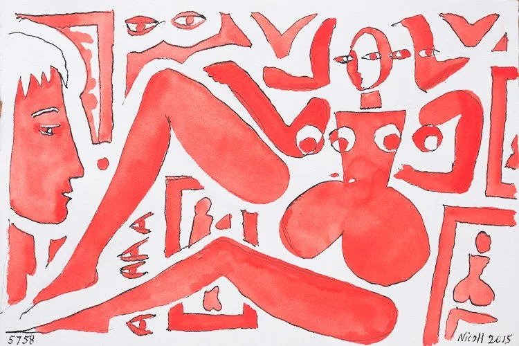 Gouache, Quill Pen & Ink on Paper 11 x 15 inches